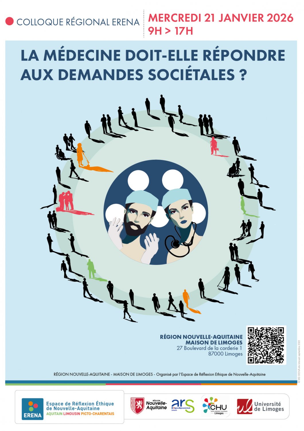 Le 21 janvier 2026, Limoges accueillera le Colloque Régional de l’Espace de Réflexion Éthique de Nouvelle-Aquitaine consacré à l’éthique en santé autour d’une question forte : « La médecine doit-elle répondre aux demandes sociétales ? ».